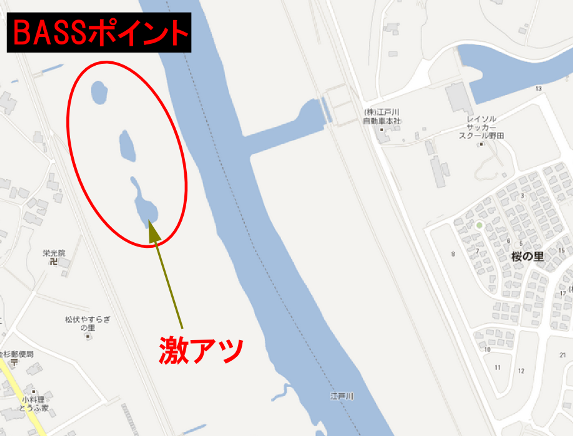 江戸川 比較的に流れが強い.そのためバスは木や,ゴロタ,テトラポッドなどのストラクチャに停留している. ライトリグを流れに乗せてストラクチャの近くに流し,ゆっくりと探ろう.